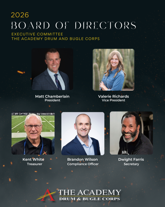 Please join us in congratulating our new officers and thanking Rich Frazier for his remarkable service. We look forward to sharing upcoming initiatives, and updates around the next edition of The Academy Drum Corps. For more information or if you would like to get involved, please visit our website.