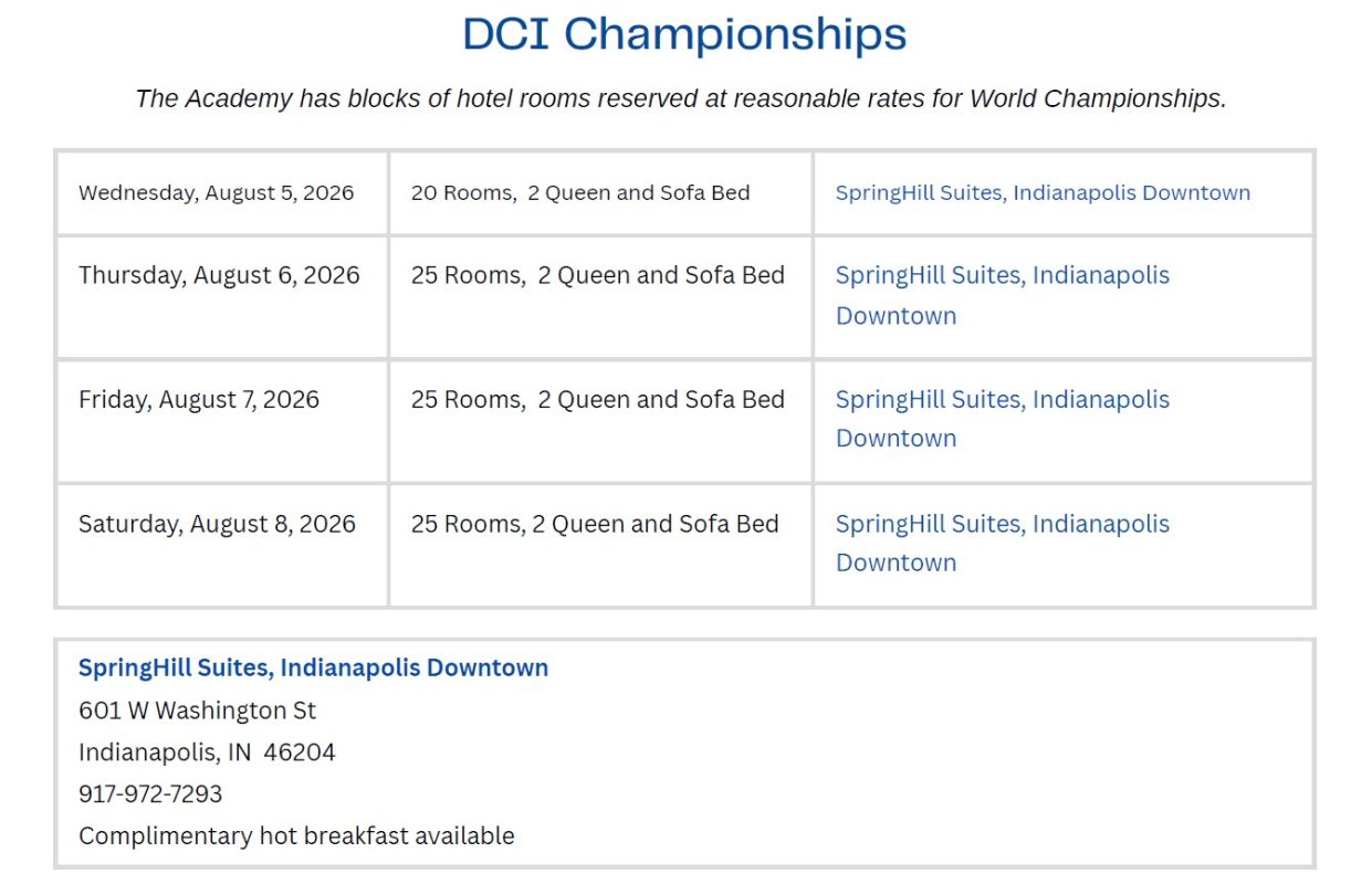 The last day to make your reservations is 6/18/26 @ 5:00 pm Eastern Time. Un-booked rooms will be released into the general inventory. For questions contact Visit Indy Housing Bureau at 317-262-8191 or email: housing@visitindy.com